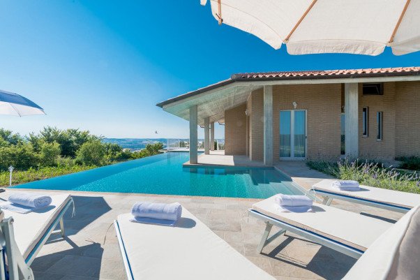Charmante und elegante Ferienvilla für 8+2 Personen mit Privat-Pool in herrlicher Panorama-Lage nur 15 km vom adriatischen Meer. Gute Einrichtung und Ausstattung, Smart-TV, Internet, Klima-Anlage, gemaueerter Grill, Parkplätze auf dem Grundstück.