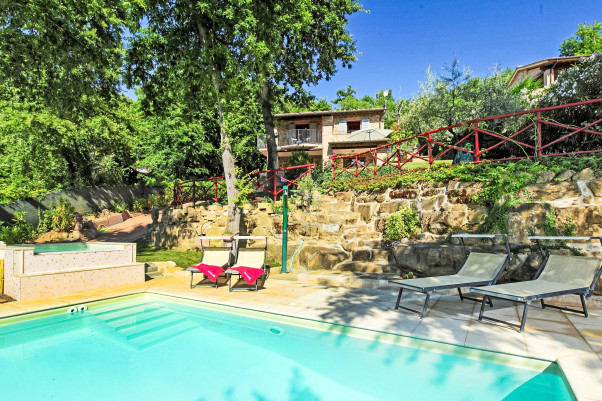 Schönes Ferienhaus für 5 Personen und Privat-Pool in ruhiger Lage 500 m vom Lago Trasimeno. Eingez. Grundstück, überdachte Sitzbereiche, Parkplatz, Terrasse mit Seeblick, Internet, Whirlpool, Außendusche.