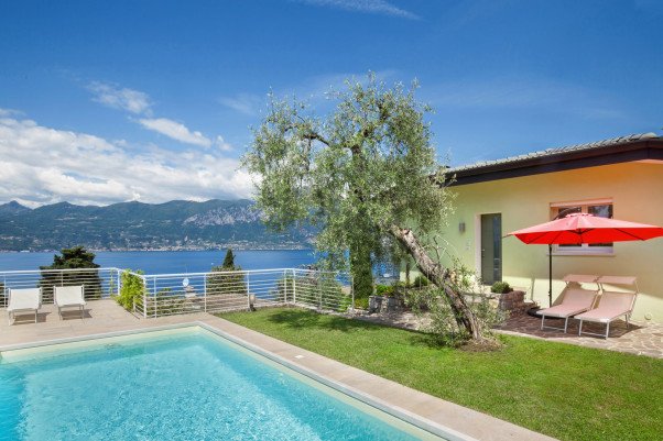 Charmante und komfortable Ferienvilla in Panorama-Lage nahe Torri Del Benaco und nur 100 m vom See entfernt.