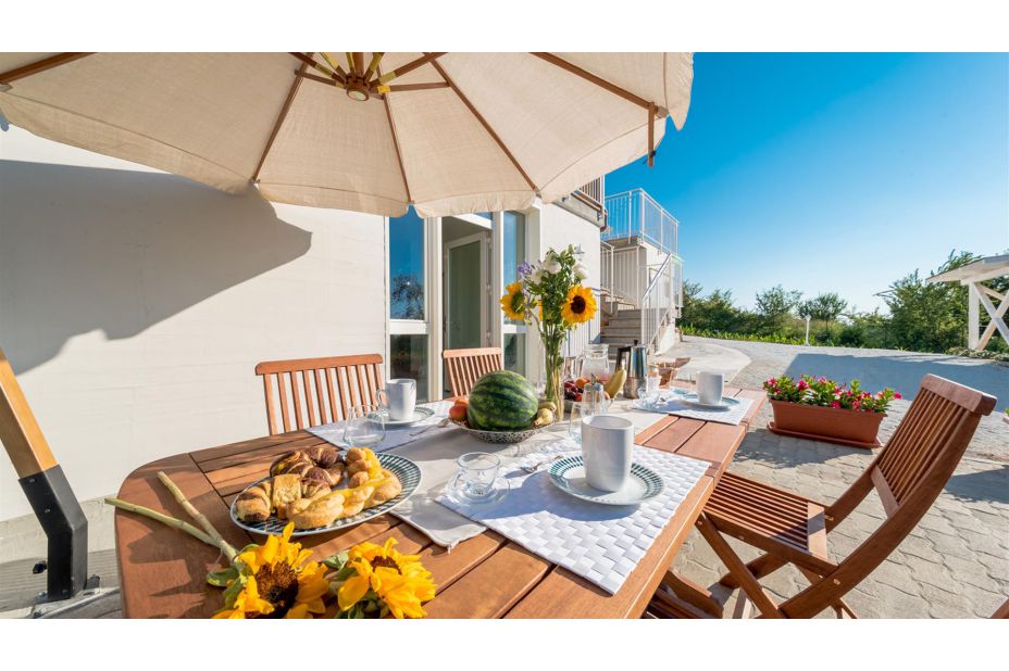 Beim Haus gibt es herrliche möblierte Sitzplätze im Freien mit traumhaftem Blick in die wunderbare Landschaft.