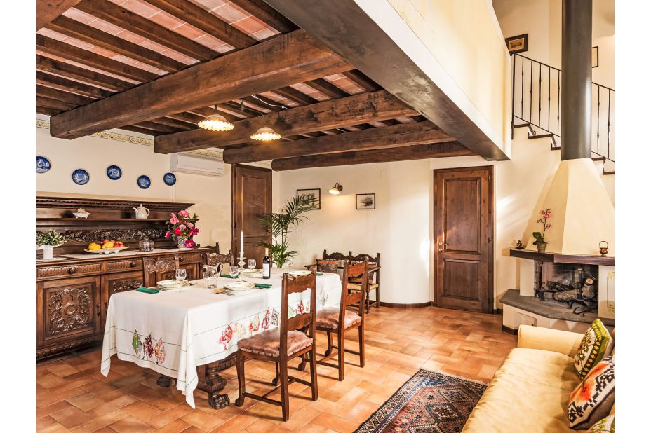 Im Erdgeschoss: Renoviert, sehr schön und geschmackvoll eingerichtet: grosses Wohnzimmer mit 1 Doppeldiwanbett, offenem Kamin, Esstisch und TV (Flachbildschirm), Stereoanlage. Ausgang zum Garten, zur Loggia.