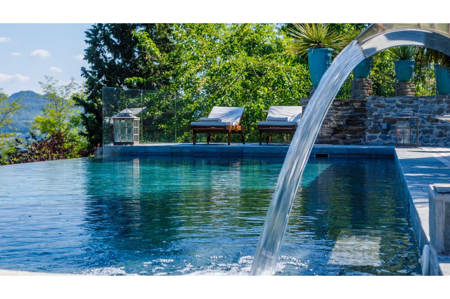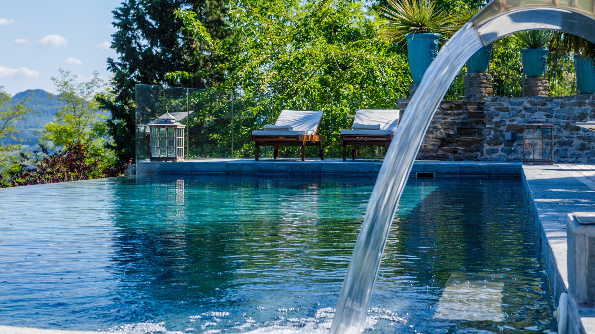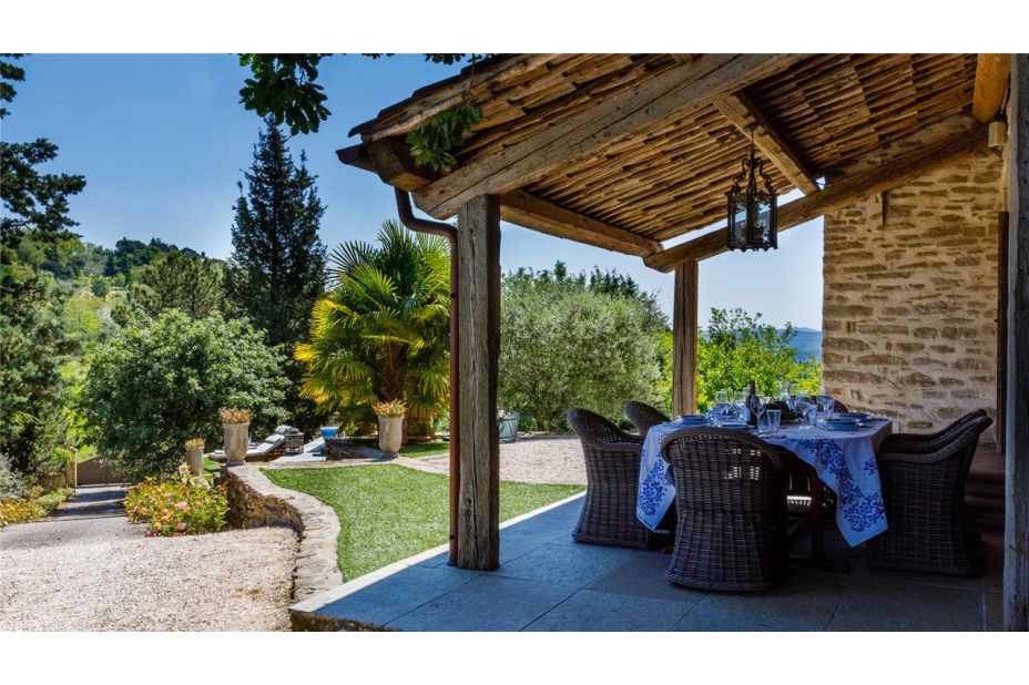 Ein wunderschöner Garten, eine Panorama-Terrasse mit Pergola umgibt das Haus, dem ein herrlicher Pool vorgelagert ist.
