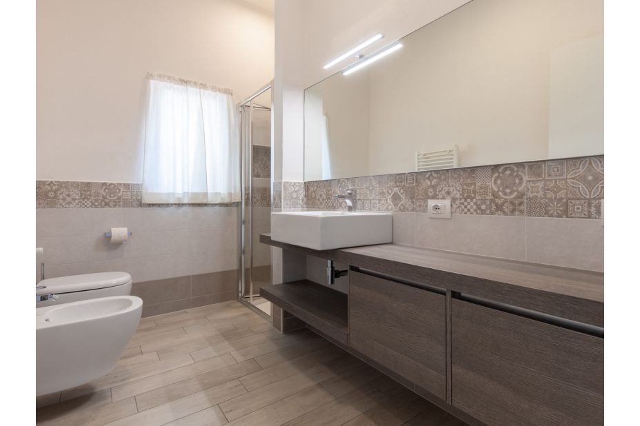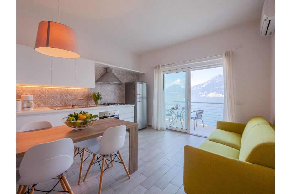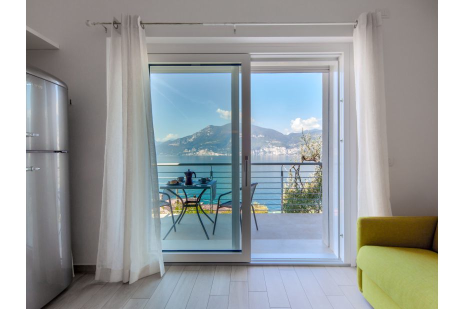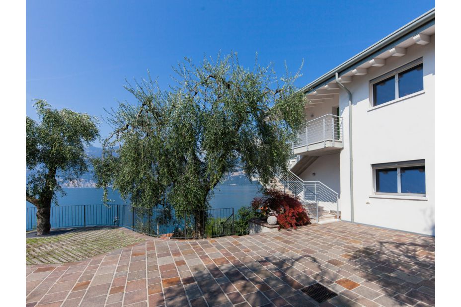 LA MAISON BLANCHE-Ora ist eines von zwei modernen Ferien-Appartement in einem renovierten Drei-Familien-Haus oberhalb von Brenzone, 400 m vom Zentrum von Brenzone, am Hang, im Villenviertel, 300 m vom See.
