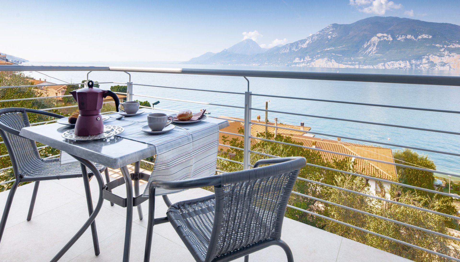 Herrliche Panorama-Terrasse mit Seeblick! Sehr gute Einrichtung und Ausstattung.