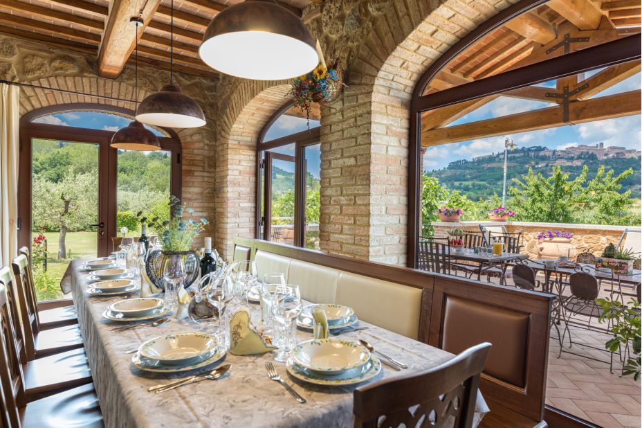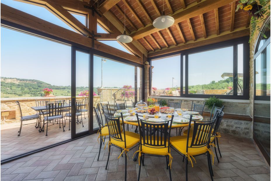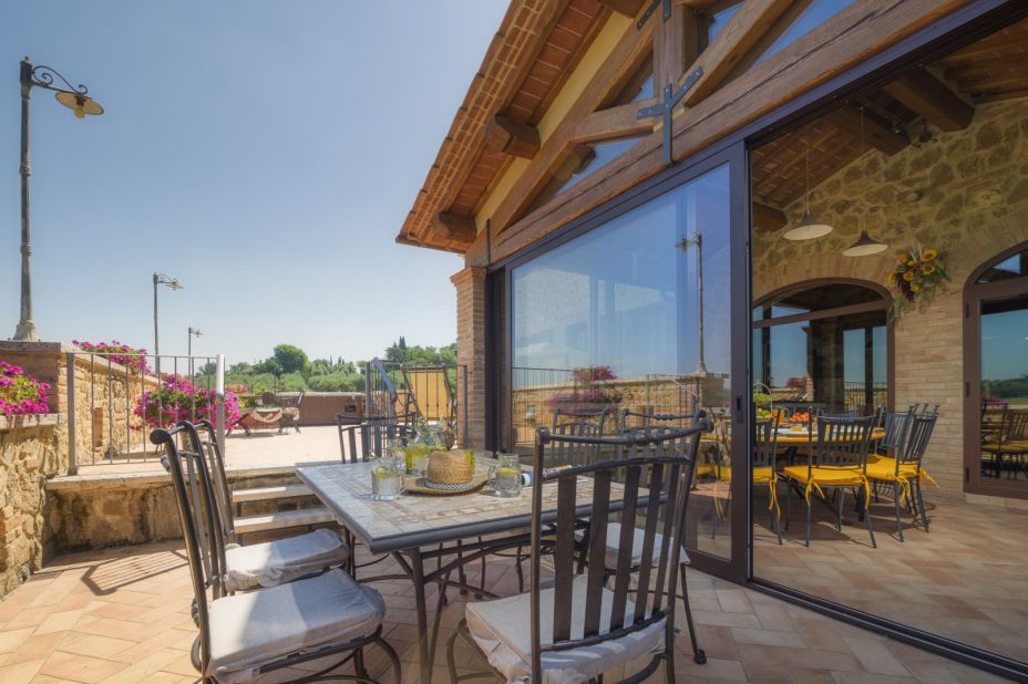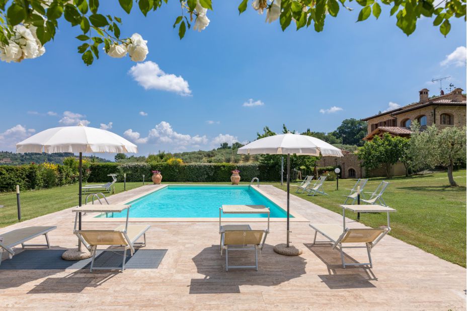 Die Lage dieses Ferien-Domizils ist traumhaft und wird durch viele Besonderheiten zu einem einzigartigen Ort für einen unvergesslichen Toskana-Aufenthalt für eine große Familie oder befreundete Gruppe: Panorama-Terrasse mit beheiztem Whirlpool, möblierte Outdoorbereiche mit Holzofen und gemauertem Grill, Kinderspielplatz mit Schaukel und Rutsche, Tischtennisplatte und Tisch-Fußball.