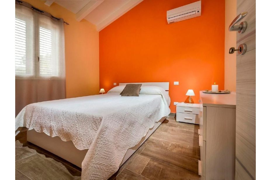 2 Zimmer, jedes Zimmer mit 2 Betten, Klimaanlage und Warmluftheizung. Küche (4 Kochplatten, Toaster, Wasserkocher, Mikrowelle, elektrische Kaffeemaschine) mit Klimaanlage. Ausgang zum Gartensitzplatz.