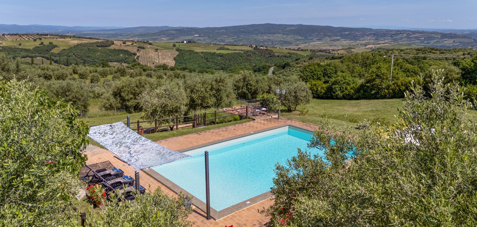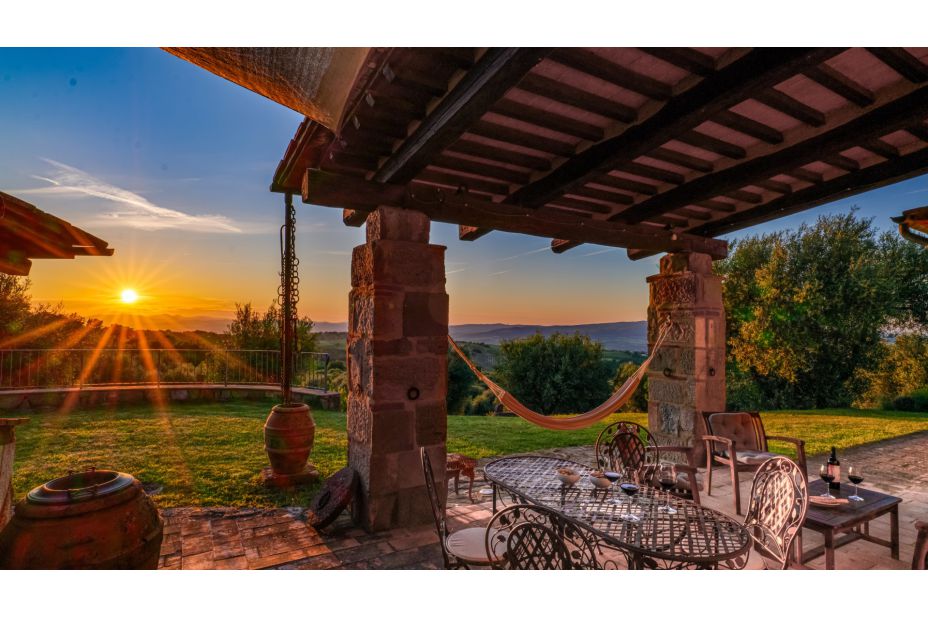 Beim Haus gibt es einen überdachten Sitzplatz mit traumhaftem Panorama-Blick in die toskanische Landschaft.