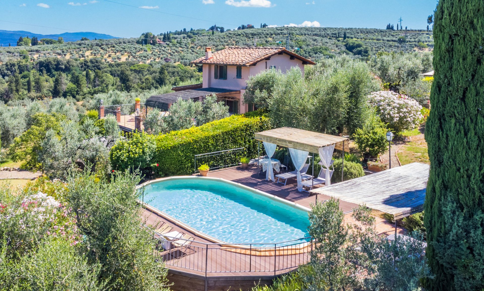Das charmante Ferienhaus Poggio de Galli liegt inmitten von Olivenhainen und mit herrlichem Blick