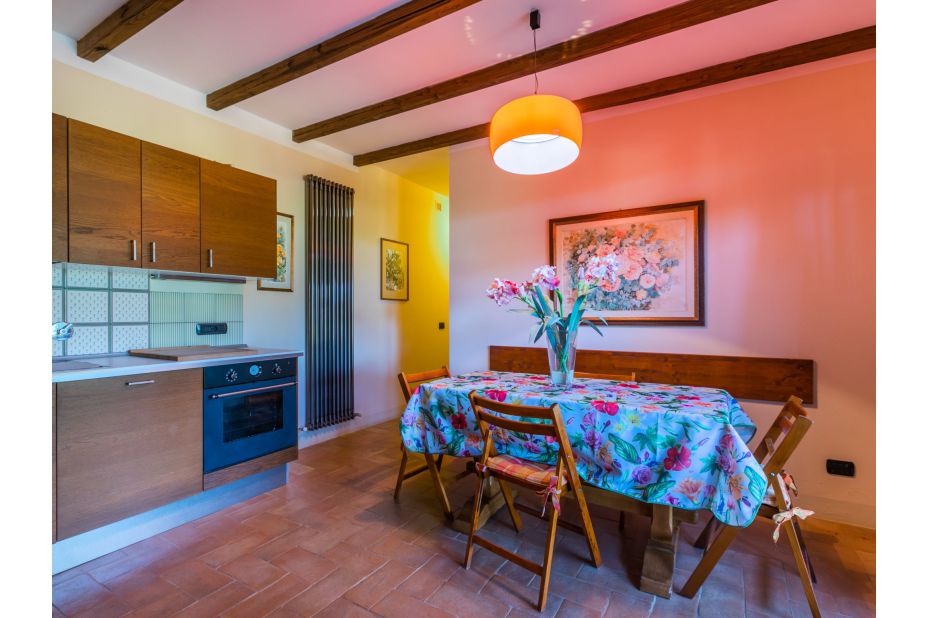 Die hellen Räume sind gut eingerichtet. Cotto- und Fliesenböden. Teils Ziegelstein-/Holzbalkendecken.