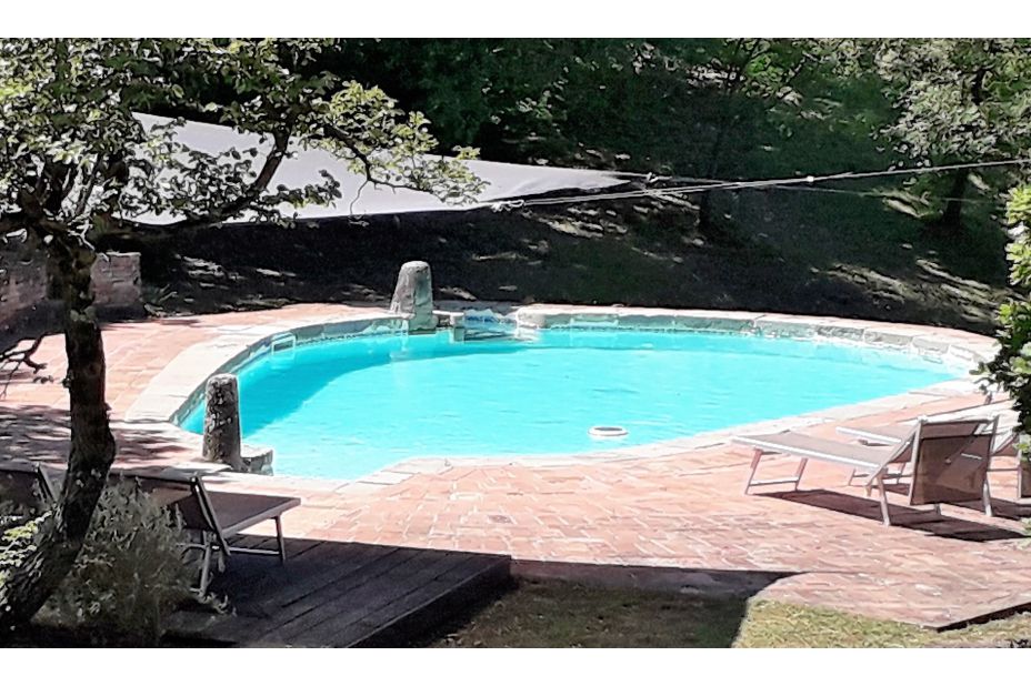 In ca. 90 m Entfernung vom Ferienhaus befindet sich ein sehr schöner Swimming-Pool zur gemeinsamen Nutzung mit weiteren Gäste von zwei kleinen Appartements im Bauernhaus (max. 6 Peronen)zur Verfügung