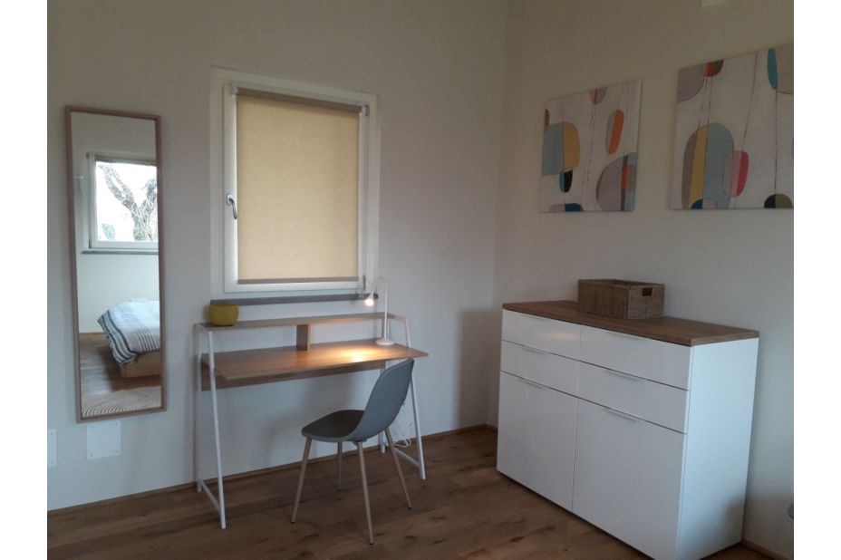 eine Leseecke und einen Schreibtisch/PC-Tisch.