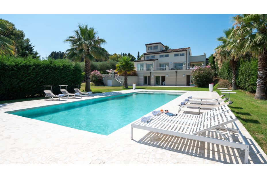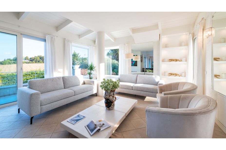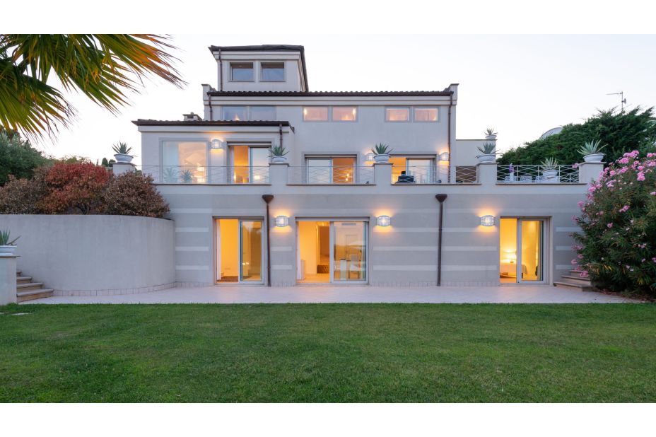 Die VILLA BIANCA ist eine moderne und elegante Villa auf den Panoramahügeln von Scacciano, mit Blick auf Gabicce Mare und das historische Schloss von Gradara. Umgeben von einem üppigen privaten Park bietet diese komfortable Unterkunft