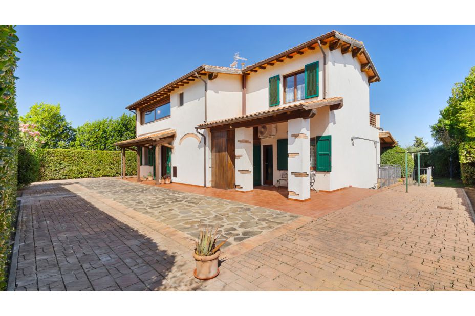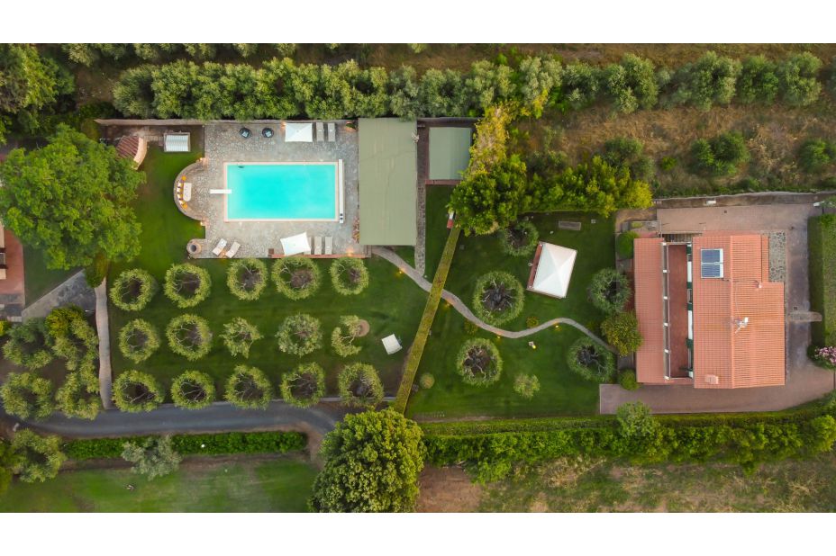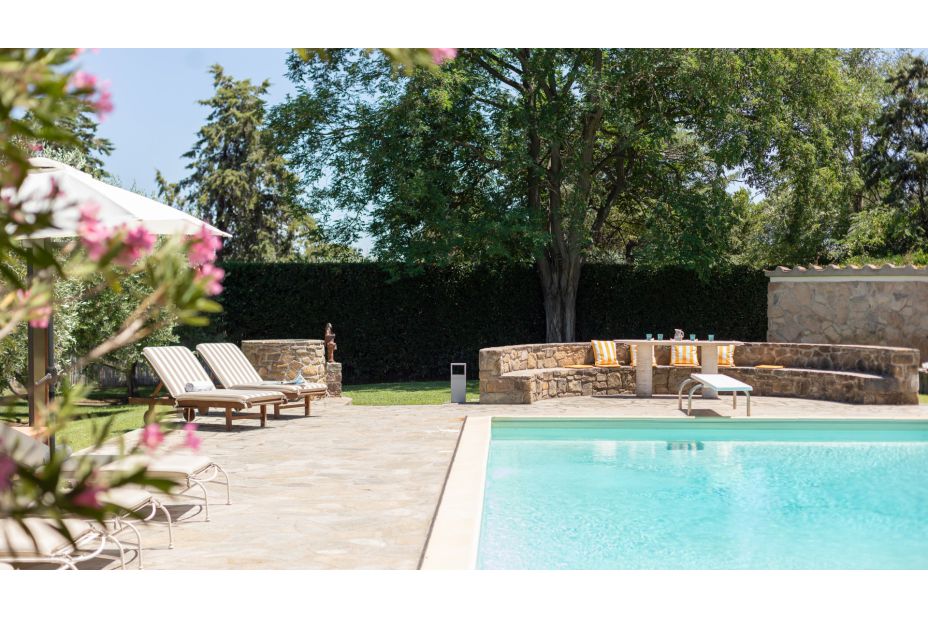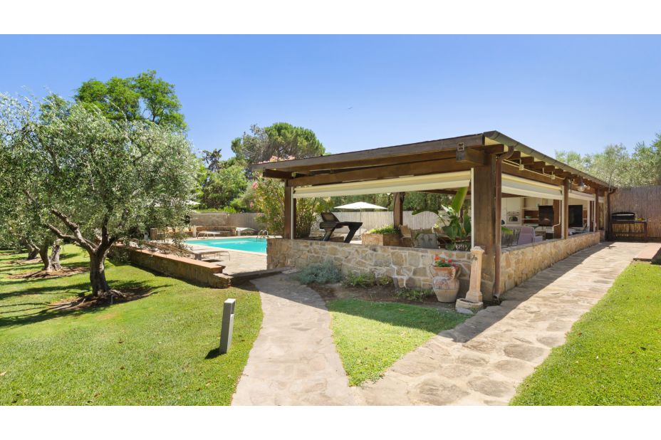 Das eingezäunte Anwesen liegt nur 4 km von Castiglione della Pescaia und der toskanischen Küste entfernt, umgeben von Olivenbäumen und Rasenflächen.