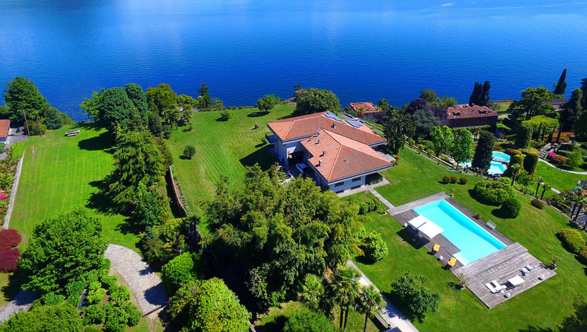 Die VILLA FIORELLA liegt in einem großen Privatpark (8000 m²) mit einem schönen gepflegten Rasen, schattenspendenden Bäumen, blühenden Pflanzen und Blumen und bietet ein atemberaubendes Panorama auf den Lago Maggiore und Umgebung.