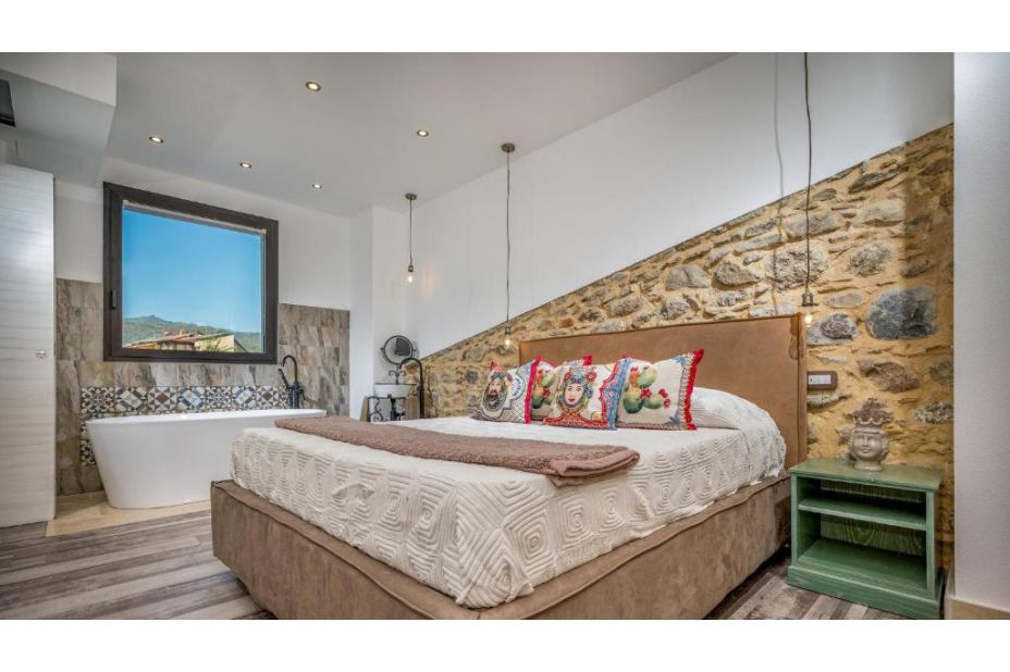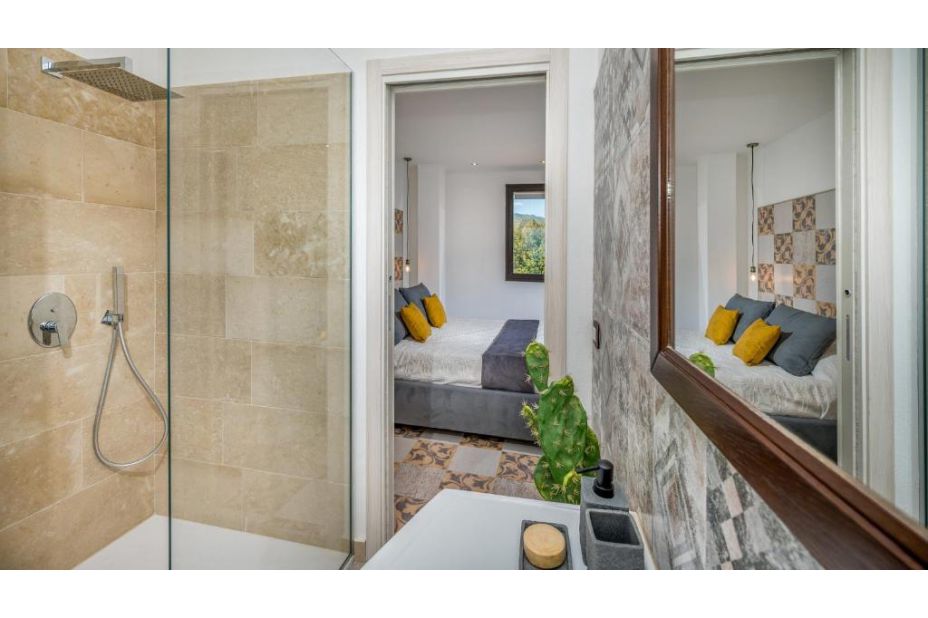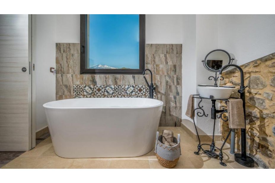 Der erste Stock besteht aus drei Doppelzimmern. Eine Unterkunft verfügt über eine eigene Terrasse und ein eigenes Bad mit Dusche. Die zweite hat eine Badewanne und ein Waschbecken im Zimmer und teilt sich ein Badezimmer mit einer Dusche mit dem dritten Schlafzimmer. Von diesem Stockwerk aus führt die Treppe weiter zur Terrasse der obersten Etage, wo Sie das Panorama des Ätna bewundern können.
