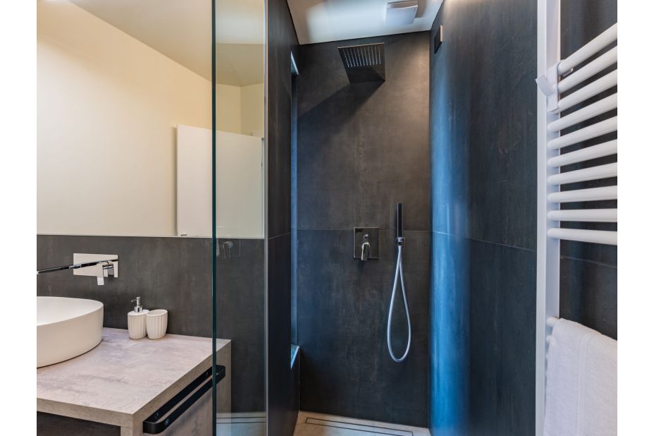 1 Doppelzimmer mit Panoramafenster mit Bad/Dusche/Bidet/WC. Ausgang zur Terrasse.