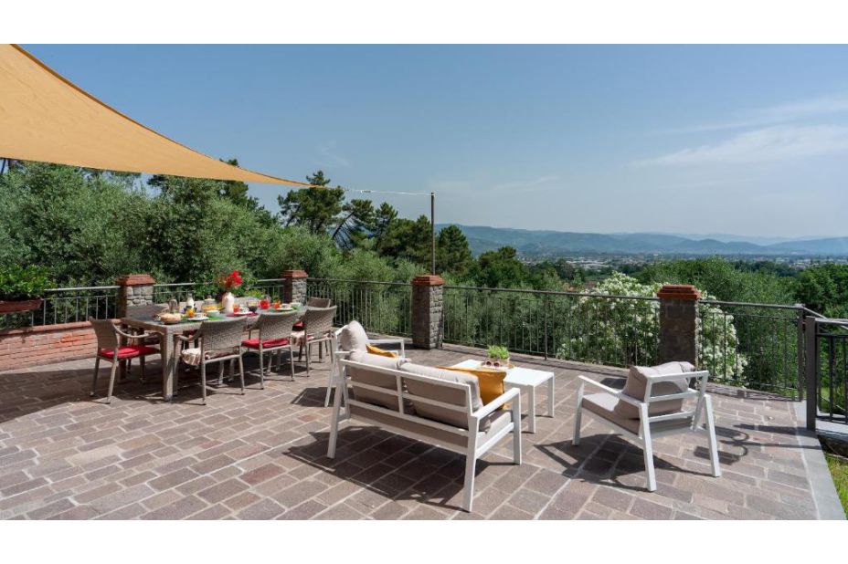 Die VILLA IRENE befindet sich in einer Panoramalage auf den Hügeln in der Nähe von Montecarlo di Lucca, einem kleinen mittelalterlichen Dorf zwischen Lucca und Montecatini Terme.