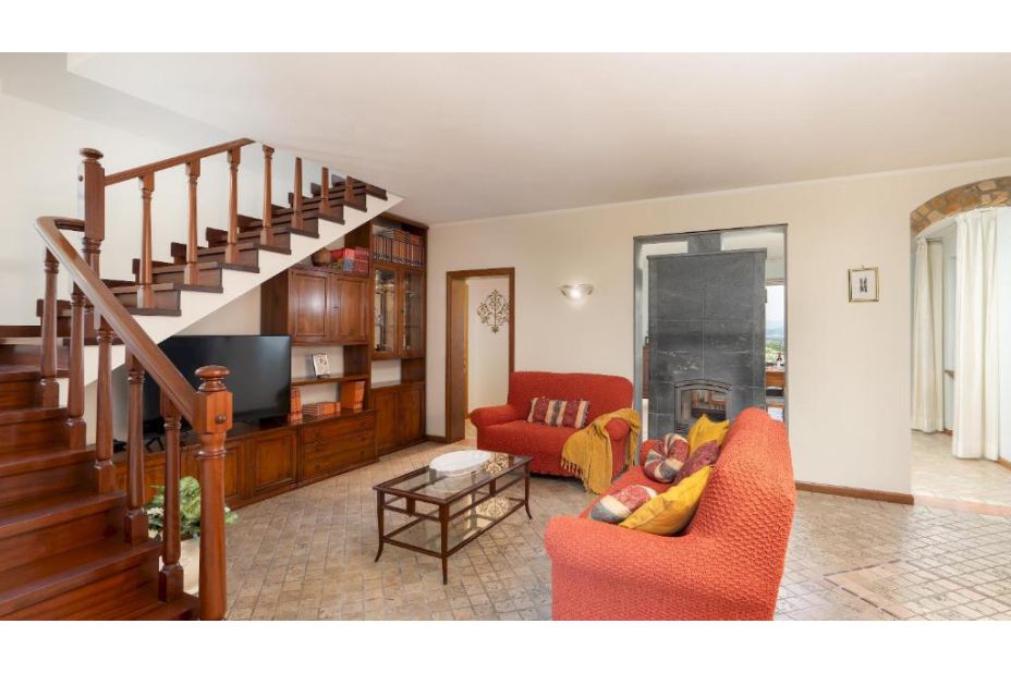 Der Pool befindet sich etwa 40 Meter von der Villa entfernt, erreichbar über zwei kurze Treppen. Rechteckig in Form, es misst 12 x 6 m mit einer Tiefe von 1,20 bis 2,20 m; es ist mit hellblauem PVC bedeckt und mit Hydromassage-Bereich und römischer Treppe für den Zugang ausgestattet.