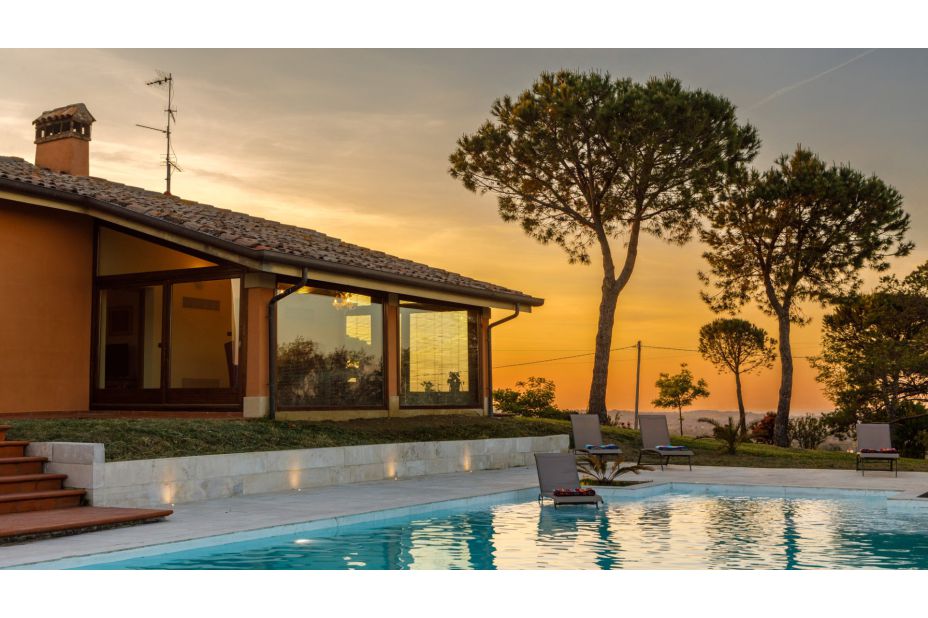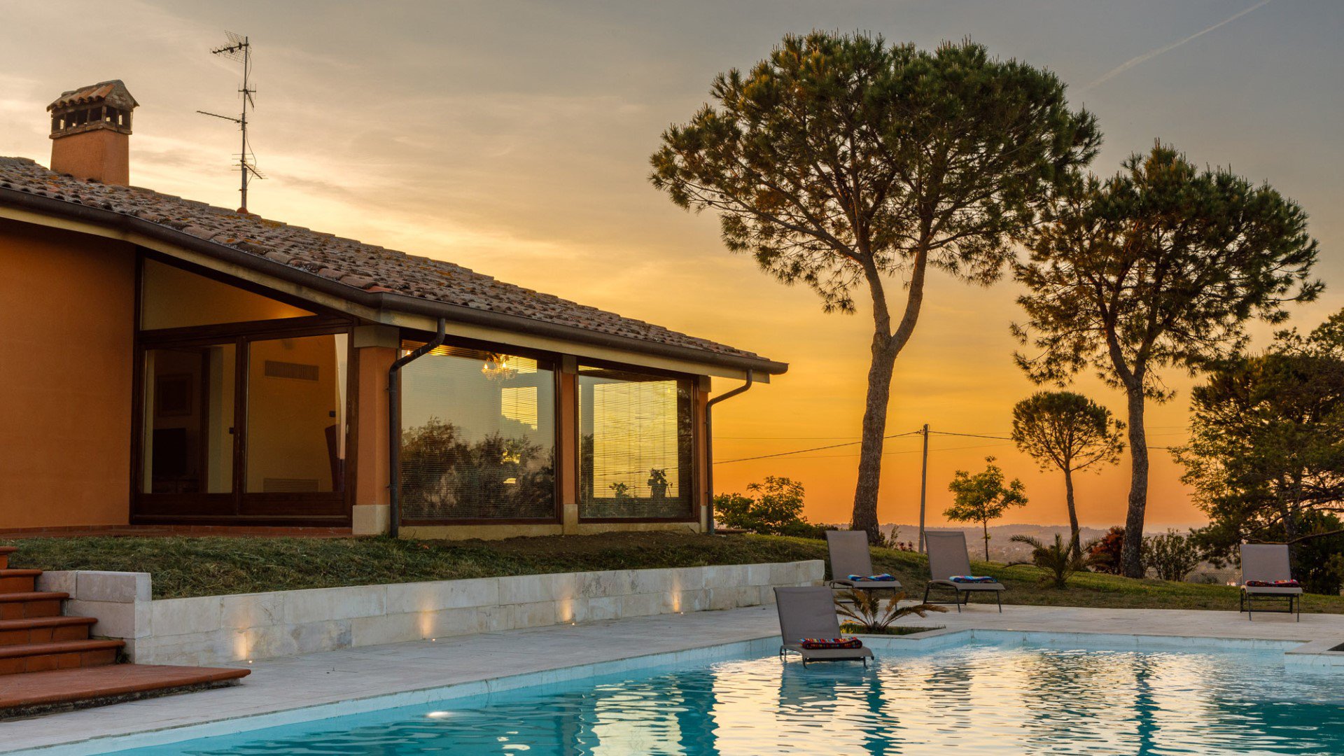 Die VILLA LA CALIFORNIA-6 ist ein anspruchsvolles und komfortables Ferienhaus für 6 Personen und mit Privat-Pool auf dem Land und nur 10 km von den Stränden bei Cattolica und Riccione.