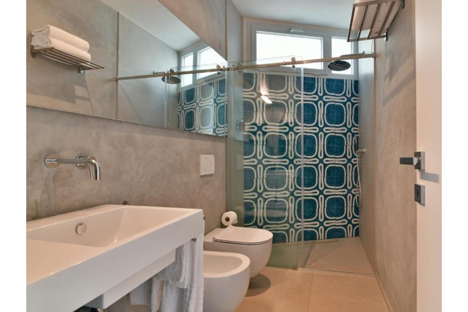Schlafbereich:  Doppelzimmer mit eigenem Bad mit Dusche; zweites Schlafzimmer mit Doppelbett, das von einem Badezimmer mit Dusche serviert wird.