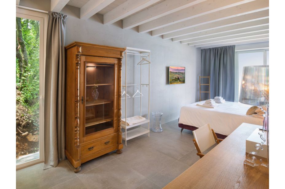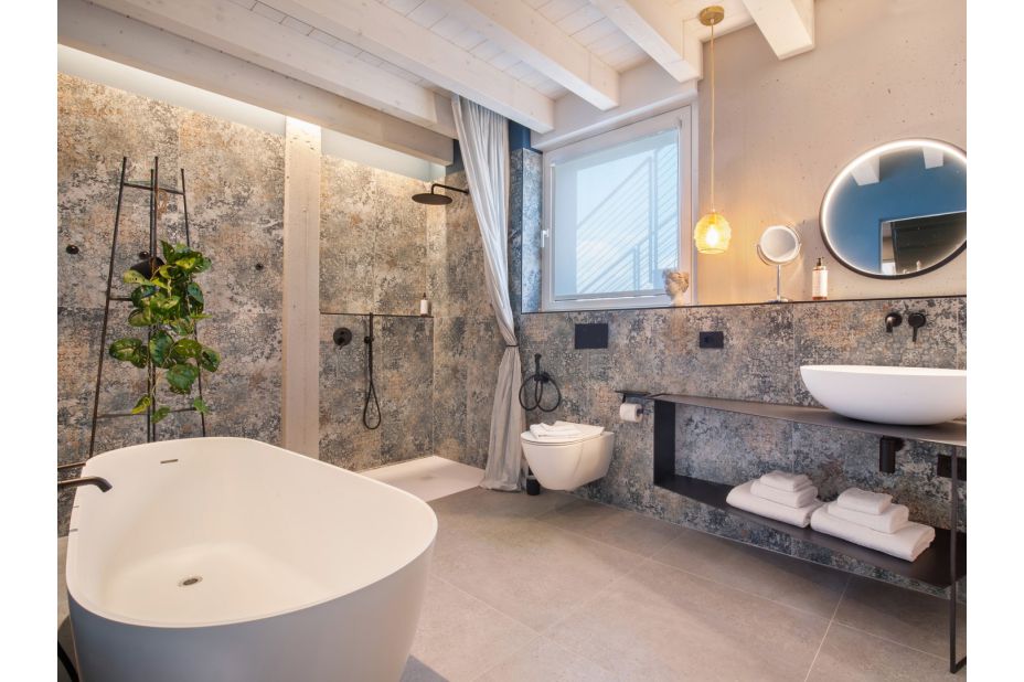 ERDGESCHOSS – Ein offener Raum mit einem Wohnzimmer, einem Essbereich und einer Küche mit raumhohen Fenstern, die sich auf die Terrasse mit Blick auf den See und die Berge öffnen. Es gibt auch ein Hauptschlafzimmer mit einer Panoramaterrasse und ein eigenes Bad mit Dusche.