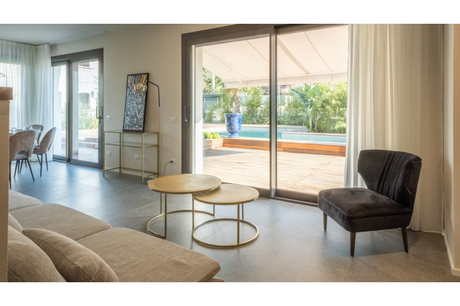 Die Villa ist in einem modernen Stil eingerichtet und mit energieeffizienten Technologien ausgestattet und bietet eine komfortable und bequeme Basis für Familien oder Gruppen von Freunden. Das Anwesen grenzt an die Doppelvilla Marea,