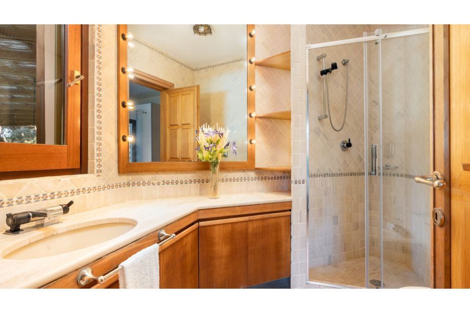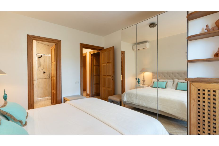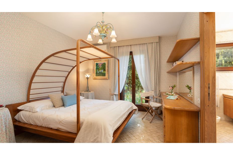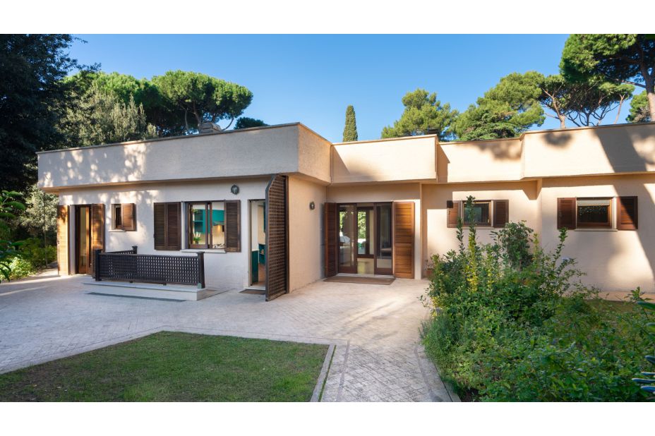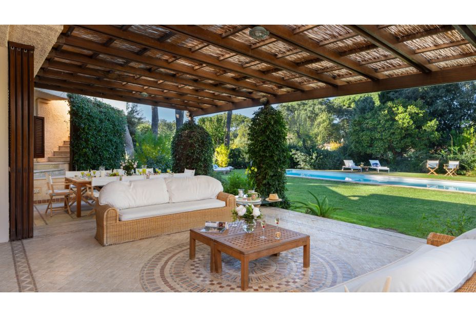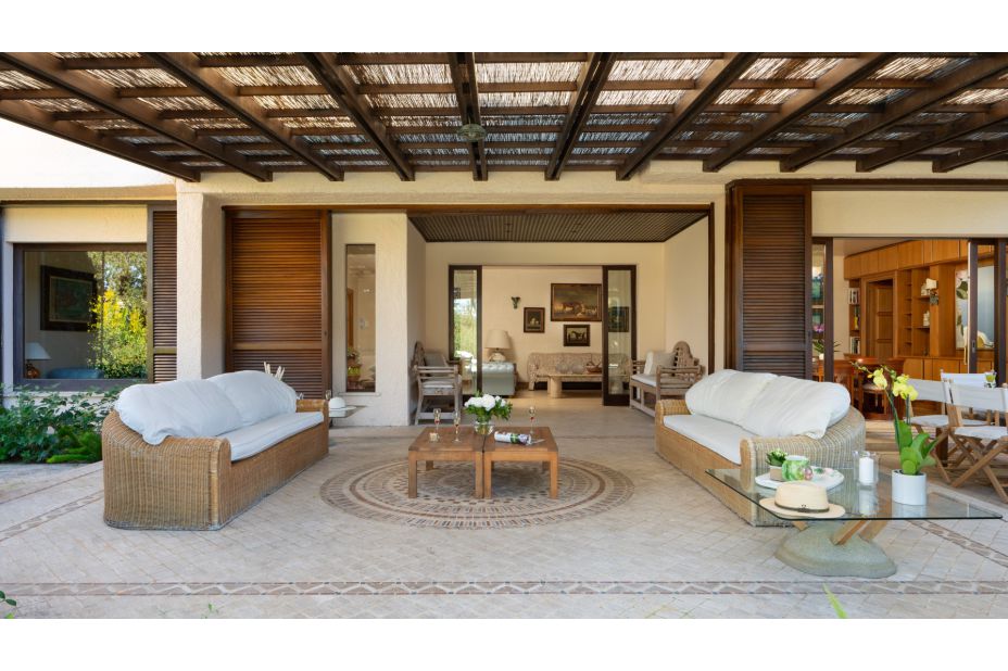 Der ebenerdige Bungalow ist umgeben von einem Pinienwald und befindet sich auf einem 2000m² großen und eingezäunten Grundstück. Das Anwesen ist ein elegantes und außergewöhnliches Ferien-Domizil mit viel Raum und Platz