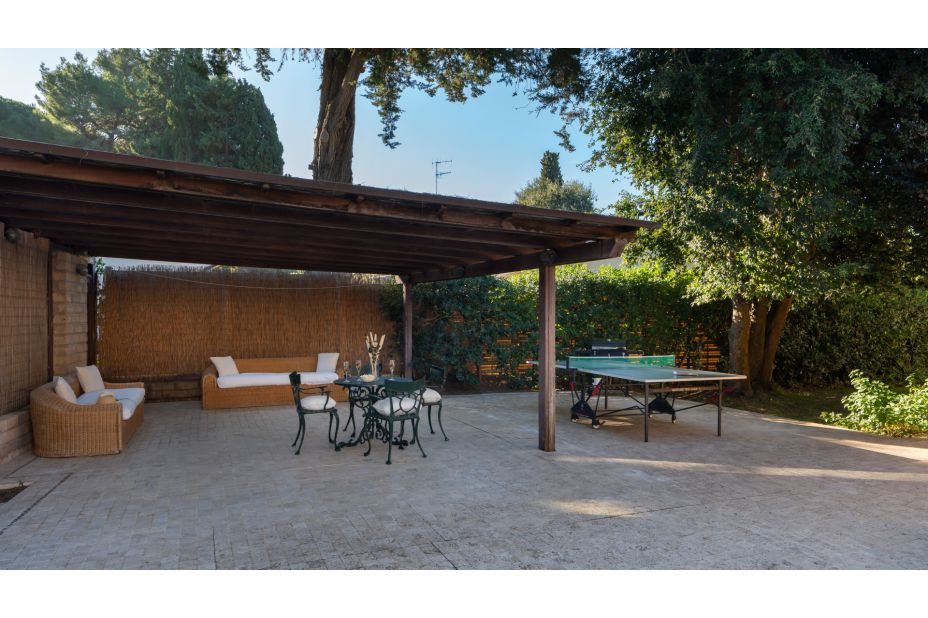Beim Haus gibt es großzügige Außenbereiche für den Aufenthalt bei Mahlzeiten, Sport und Relaxing.