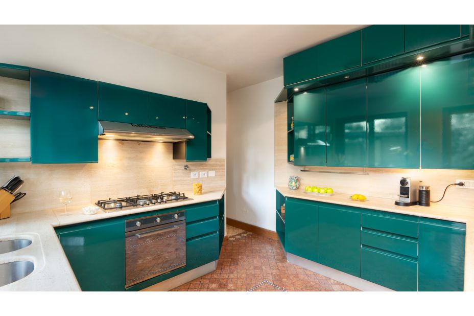 Küche mit Zugang zur Pergola, Grillplatz und Waschküche; Gästebad;