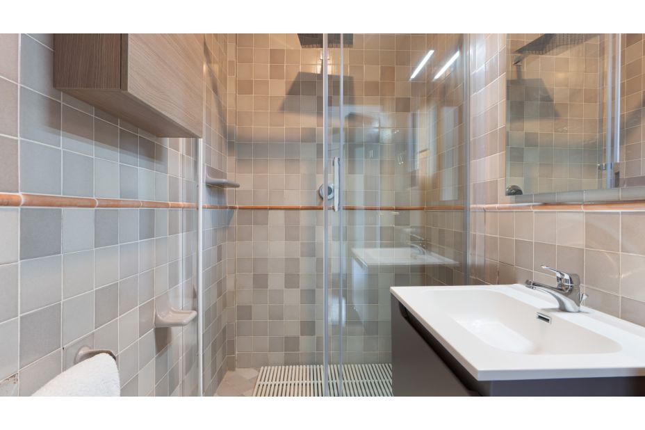 drei Doppelzimmer und ein Zweibettzimmer mit zwei Einzelbetten, alle mit eigenem Bad mit Dusche;