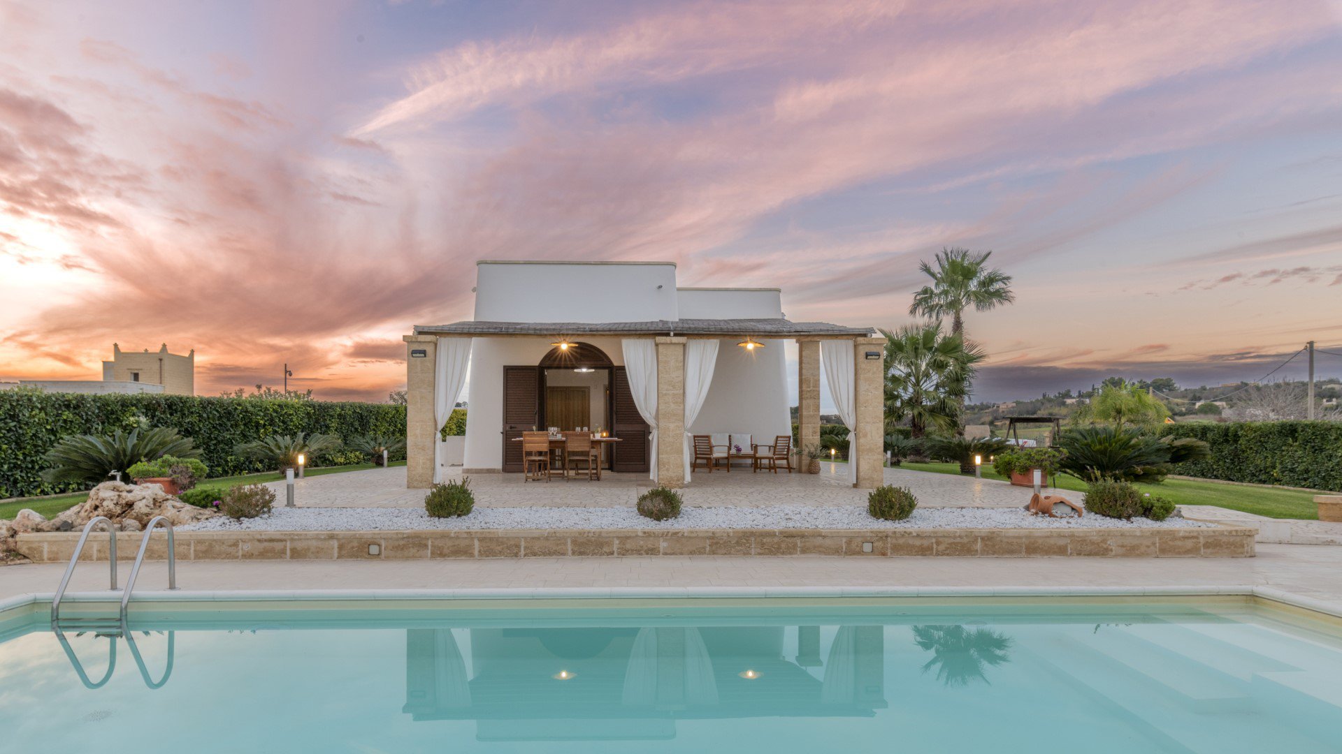 Der Pool befindet sich wenige Meter vor dem Wohnberich und der Terrasse