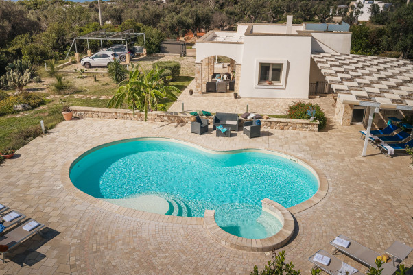 Charmante und komfortabel Ferienvilla für 8 Personen mit Privat-Pool, Outdoorkitchen und großem Porticato in unmittelbarer Meernähe. Gute Einrichtung und Ausstattung, Klima-Anlage, Internet, SAT-TV, Grill, Holzofen, Parkplätze.