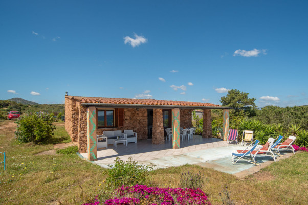 Reizendes Ferienhaus für 6 Personen direkt am Strand von La Finosa bei Porto Istana. Terrasse mit Porticato,